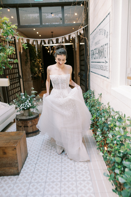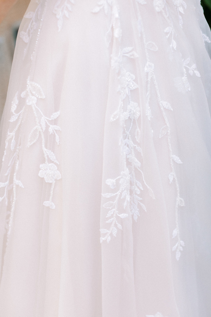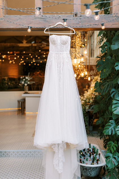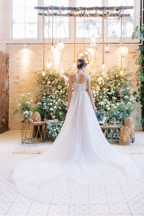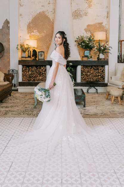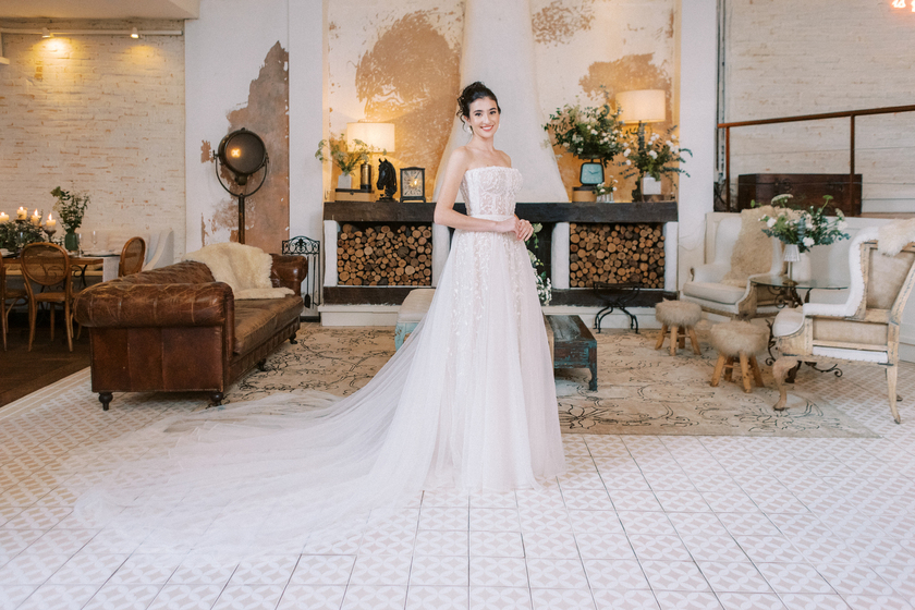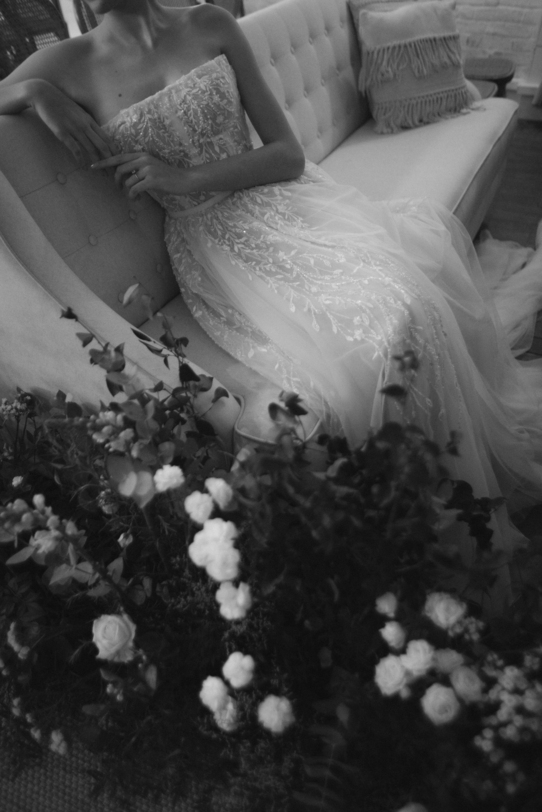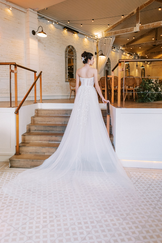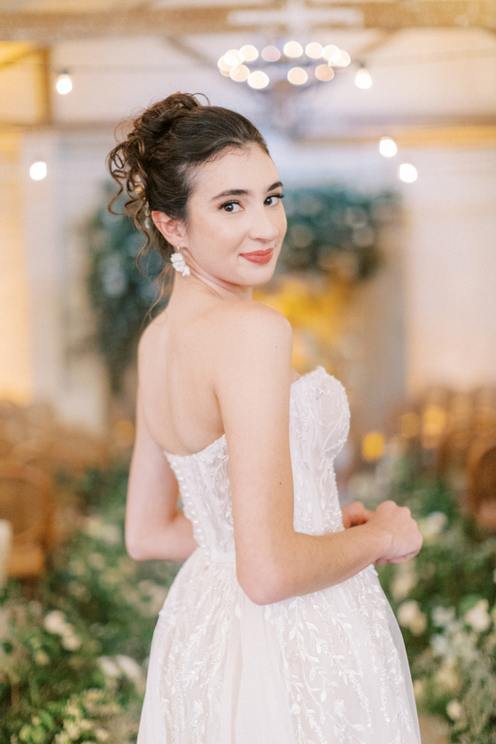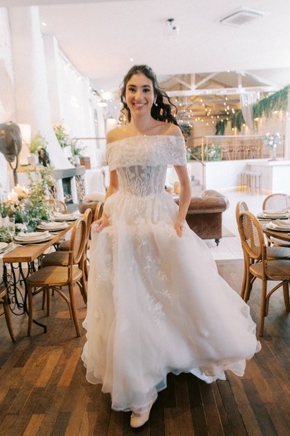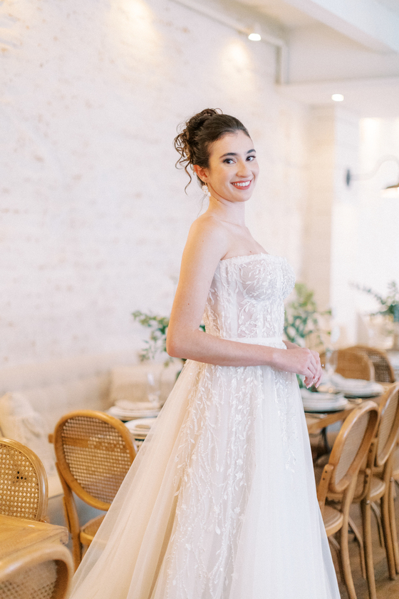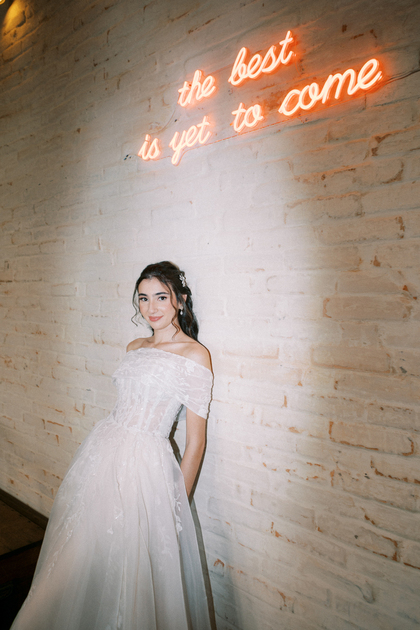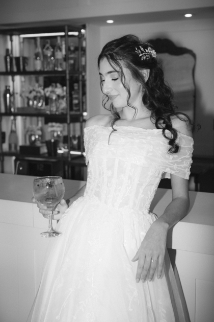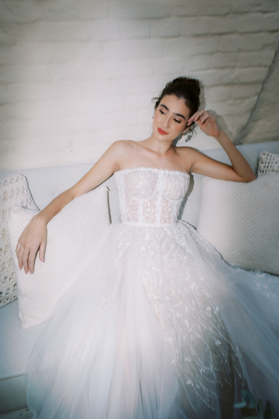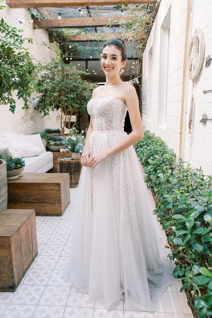 Sem alças, com caimento impecável e um leve brilho que capta a luz de forma delicada, ele traduz a sofisticação de uma noiva moderna, que busca elegância sem abrir mão do conforto e da autenticidade.