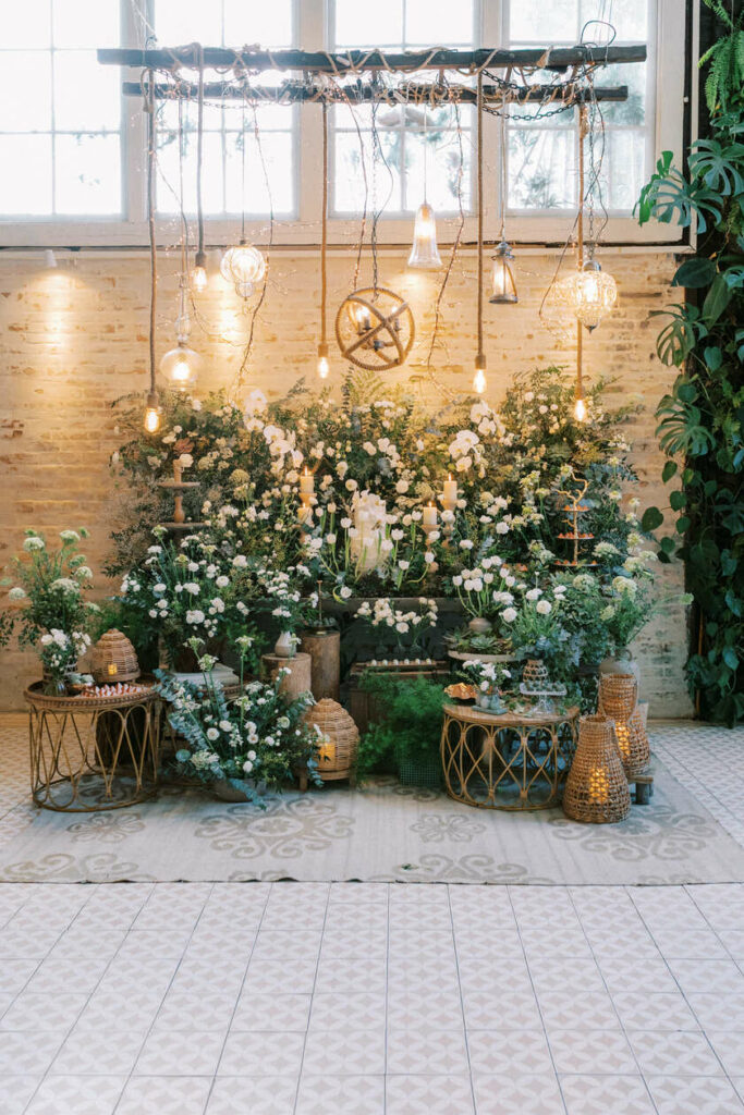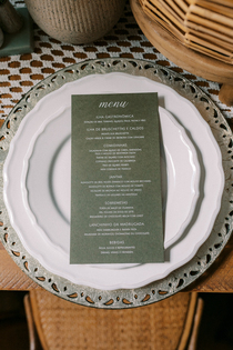 Cada detalhe foi pensado para transmitir essa ideia de um amor cultivado: os menus personalizados como se fossem etiquetas de sementes, a papelaria com ilustrações botânicas, os doces em formas naturais, o bolo decorado com folhagens e flores secas. Tudo compõe um cenário que fala de pertencimento, de raízes, de origem.