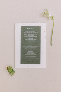 Os menus, inspirados em etiquetas de sementes e as ilustrações botânicas remetem ao cuidado de cultivar uma história juntos.