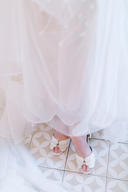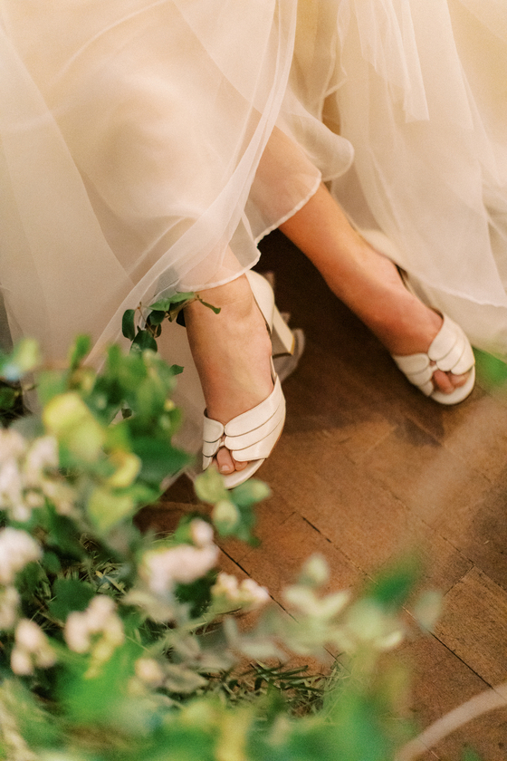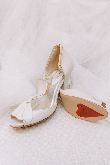 Os sapatos da noiva são tão importantes quanto o vestido. Equilibrando sofisticação e movimento livre, Juliana Bicudo traduz o conceito em peças únicas. Destaque para a sandália Pétalas, feita à mão com os icônicos corações na sola, detalhe que virou símbolo da marca.