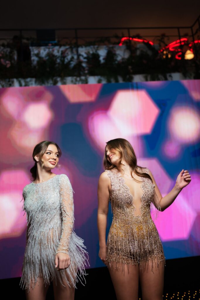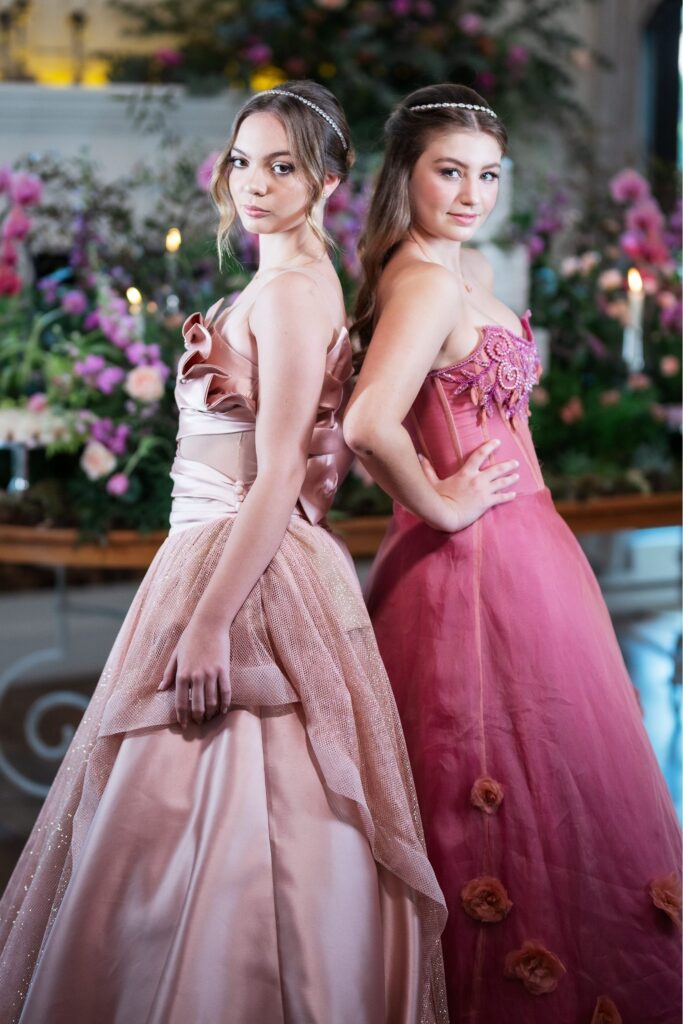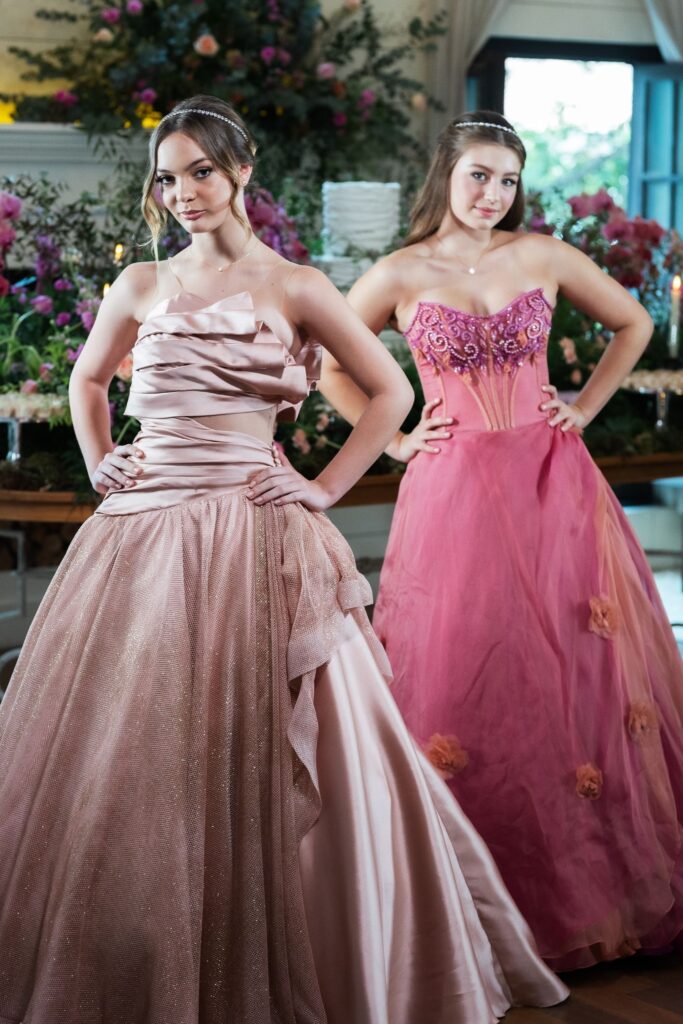 A confeitaria ficou por conta do Atelier Mariza Doces, enquanto a identidade visual foi criada pela Galliari Design, compondo detalhes gráficos que contaram parte dessa história. As debutantes brilharam com vestidos exclusivos de Charles Hermann para Victoria Alta Costura, joias da Prado Joalheria e beleza assinada por Beatriz Barros.